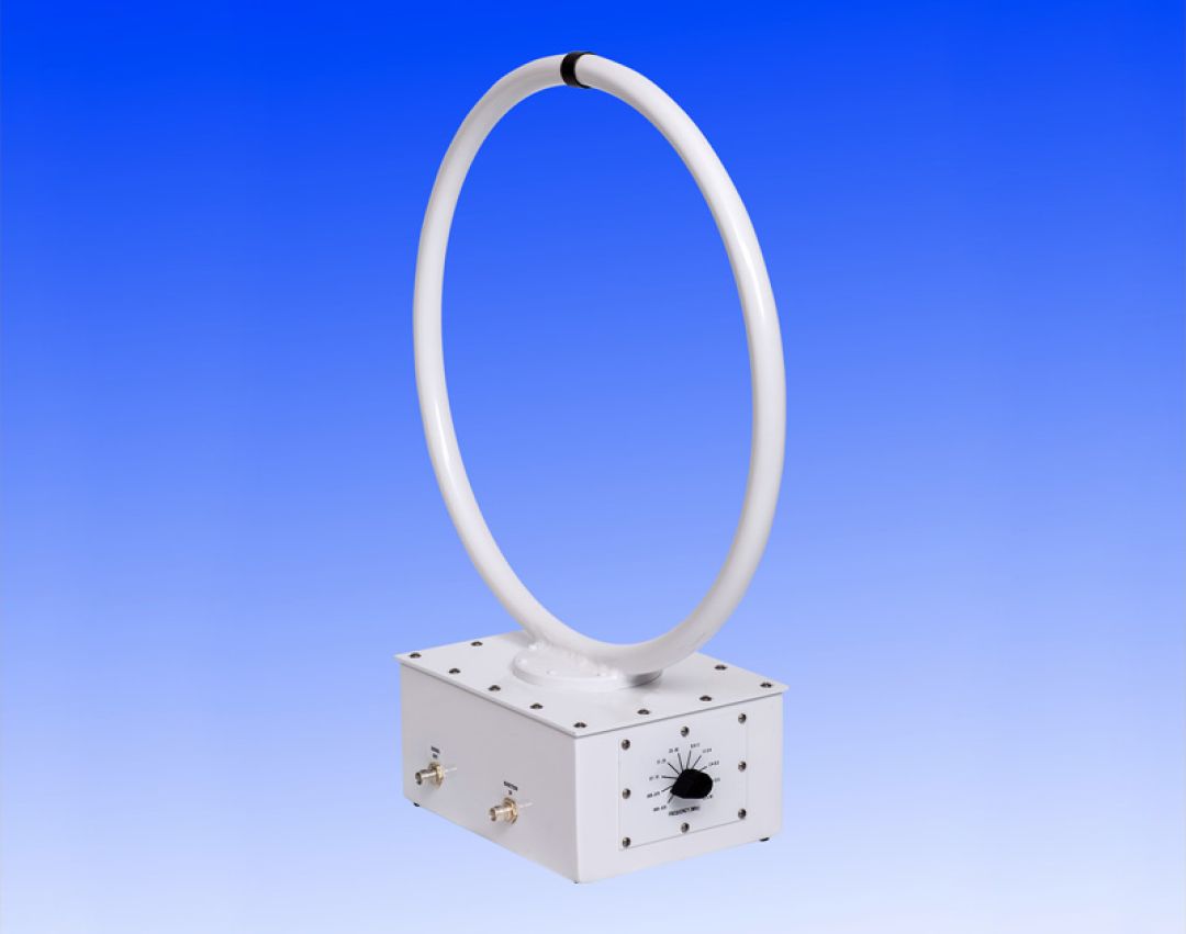 The EM-6878 Loop Antenna performs magnetic field measurements from 9 kHz to 30 MHz. A ten position rotary switch is used to switch in the appropriate matching network for the frequency selected. The antenna is calibrated for and can be used with any 50-ohm receiver/analyzer system.